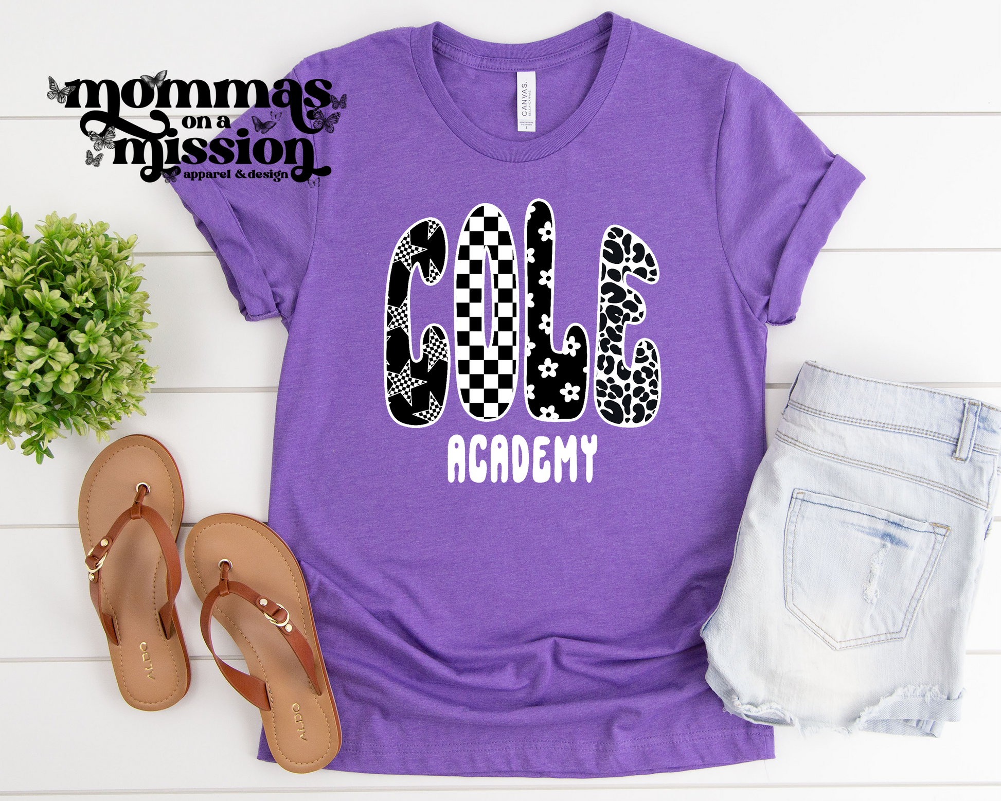 Item shown in heather team purple Bella Canvas tee. View product description here.