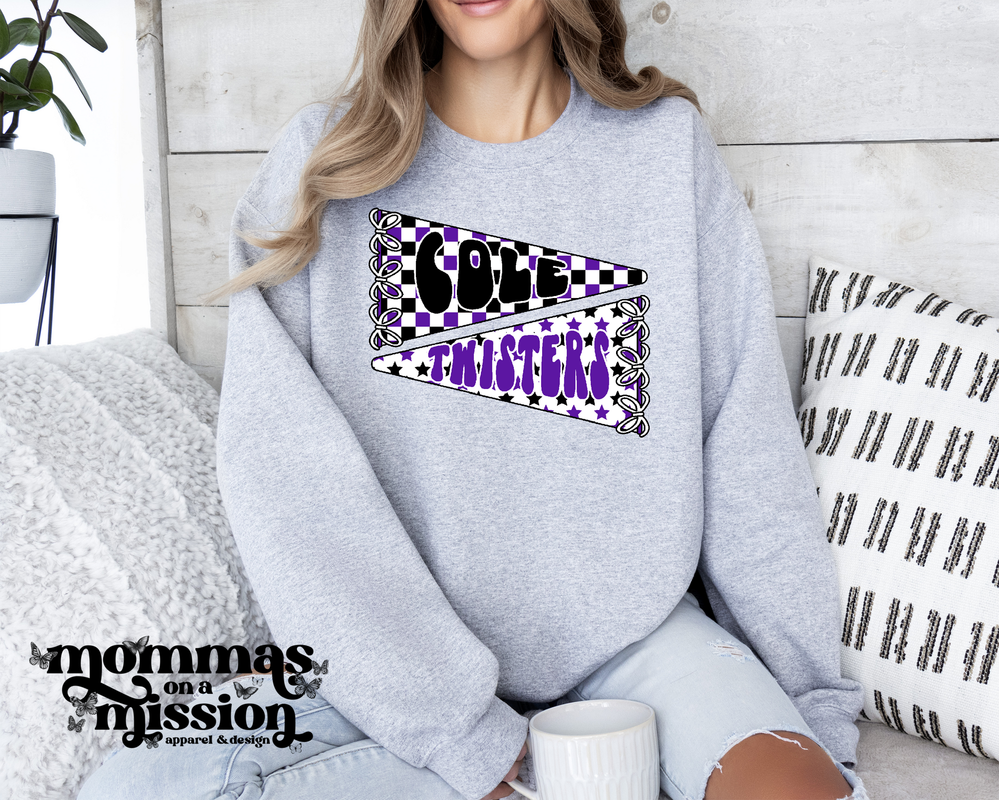Item shown in heather athletic Gildan crewneck. View product description here.