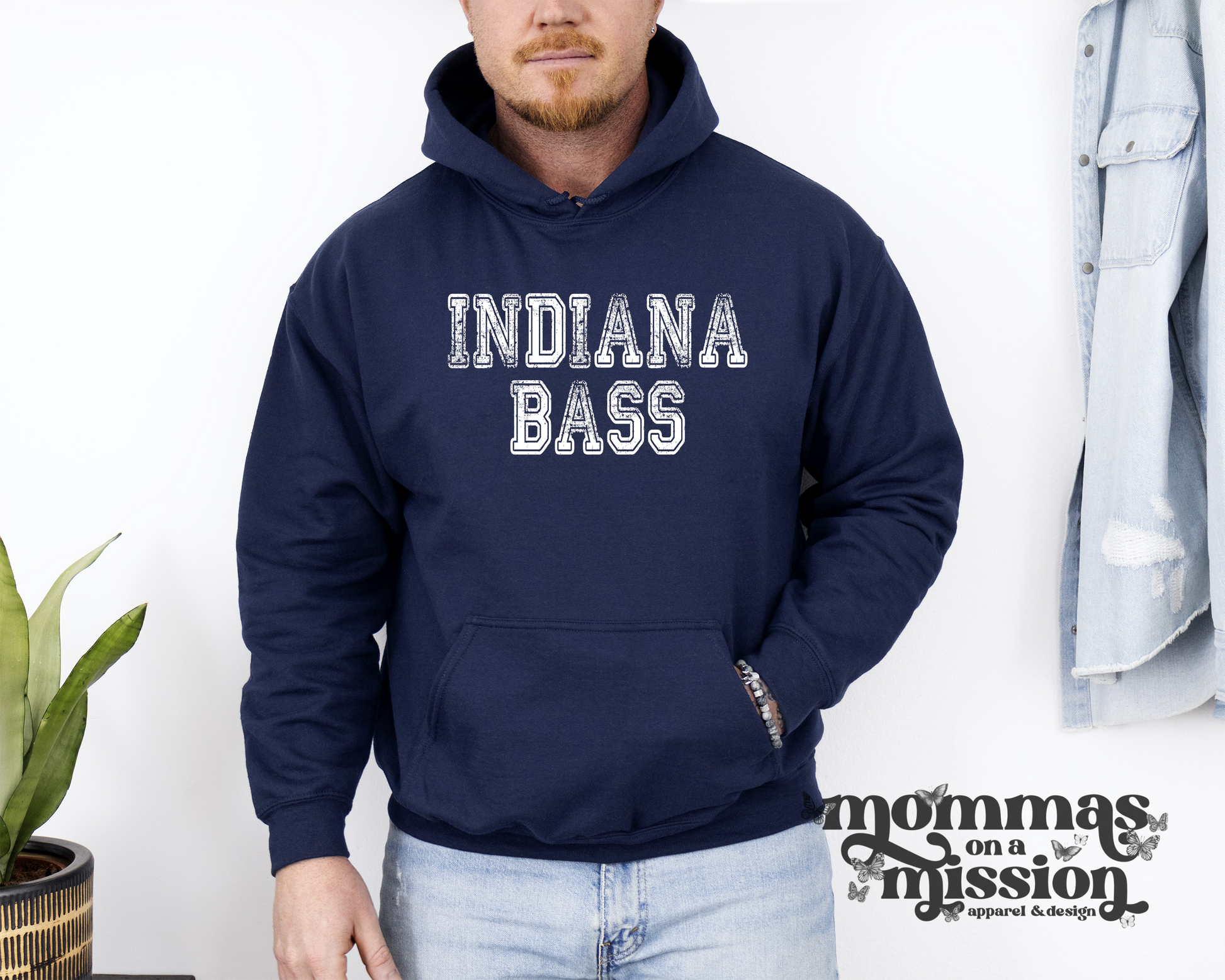 Item shown in navy Gildan hoodie. View product description here.