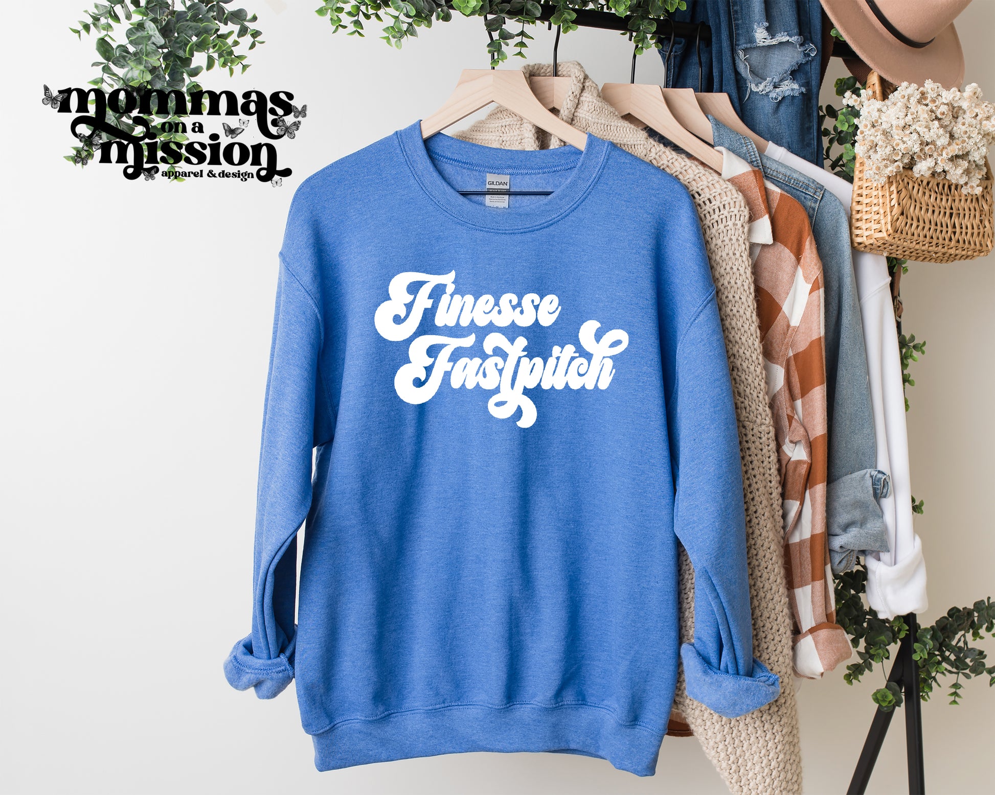 Item shown in sport royal blue Gildan crewneck. View product description here.