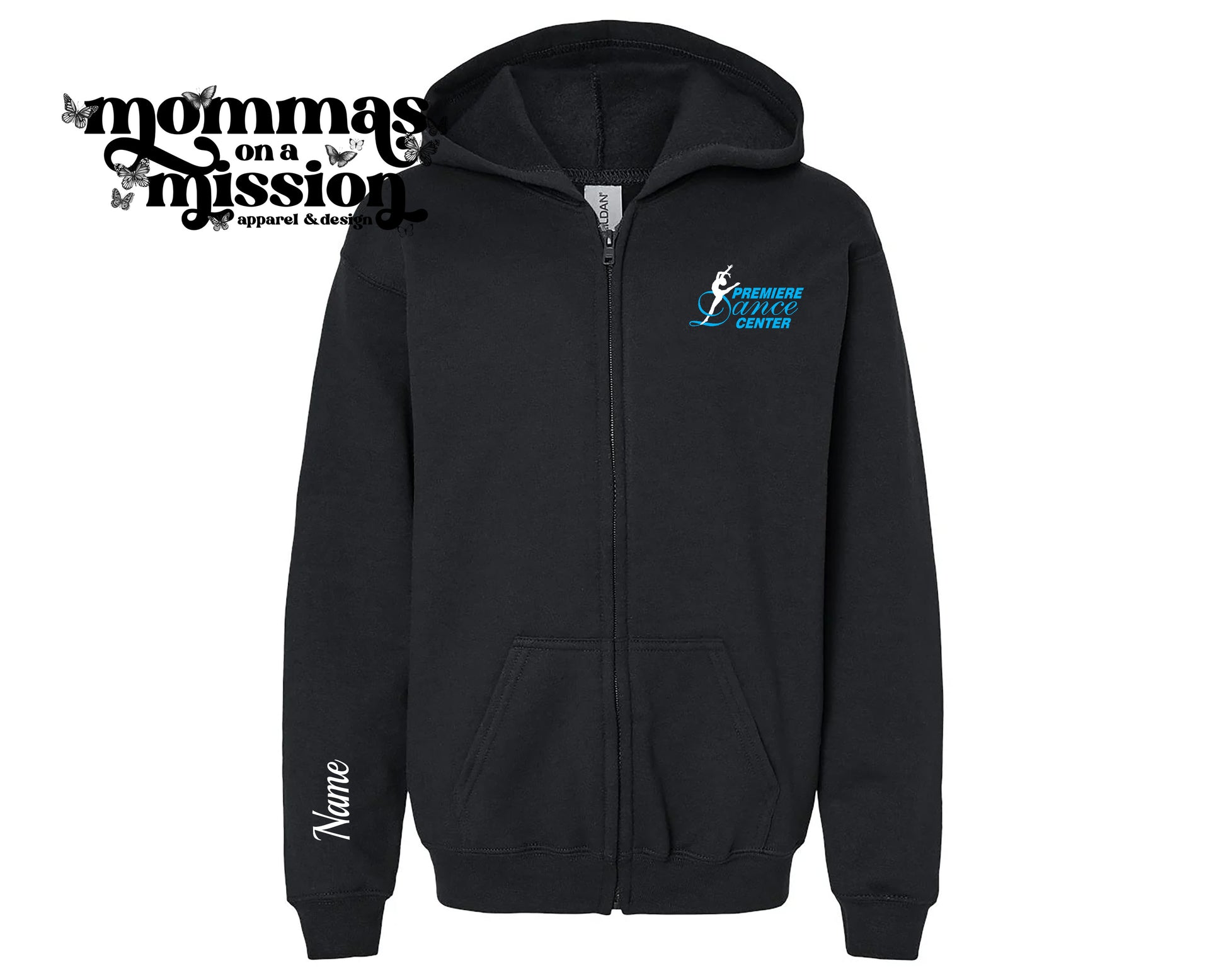 premiere dance logo zip up with custom name (youth) - pdc
