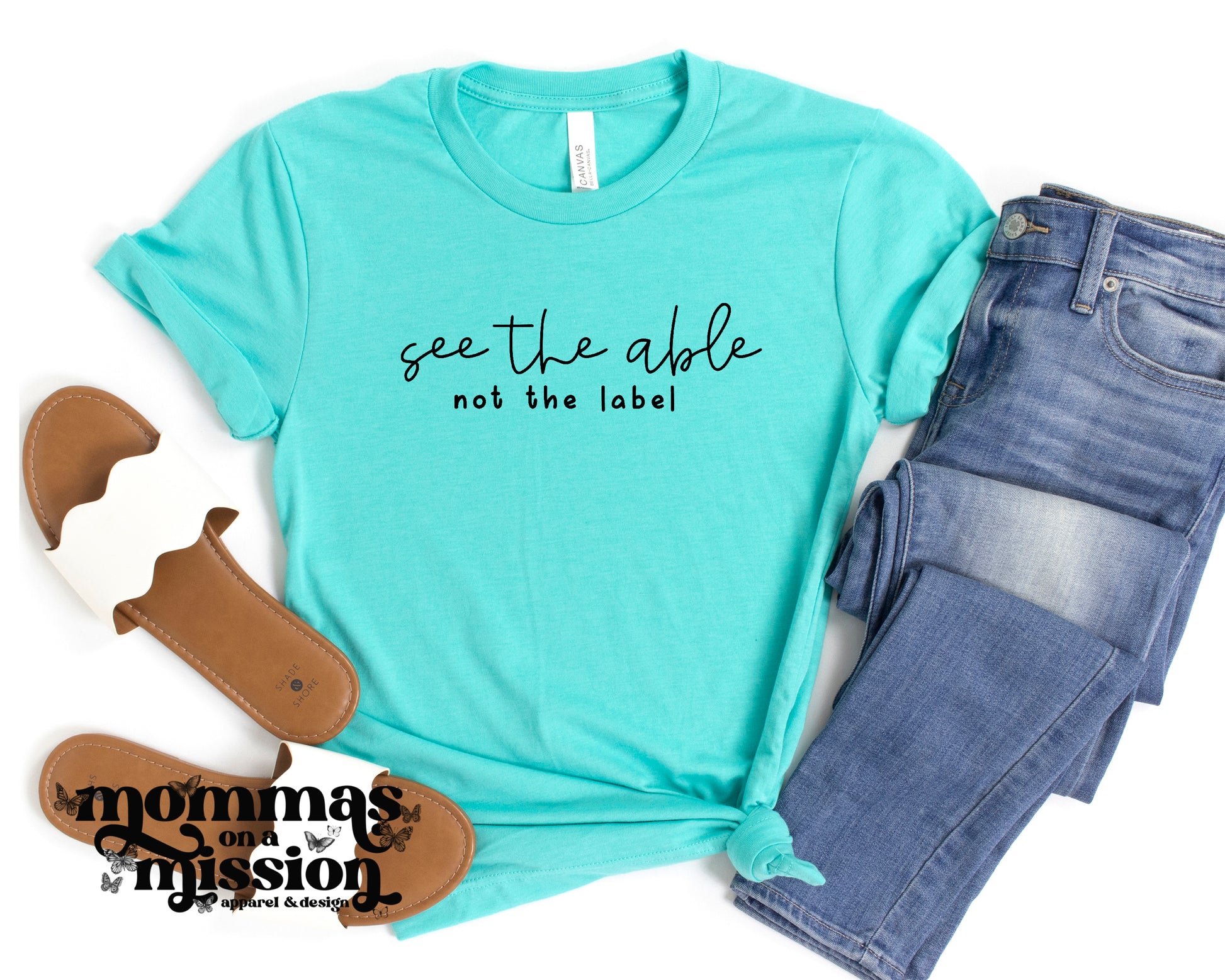 Item shown in heather sea green Bella Canvas tee. View product description here.