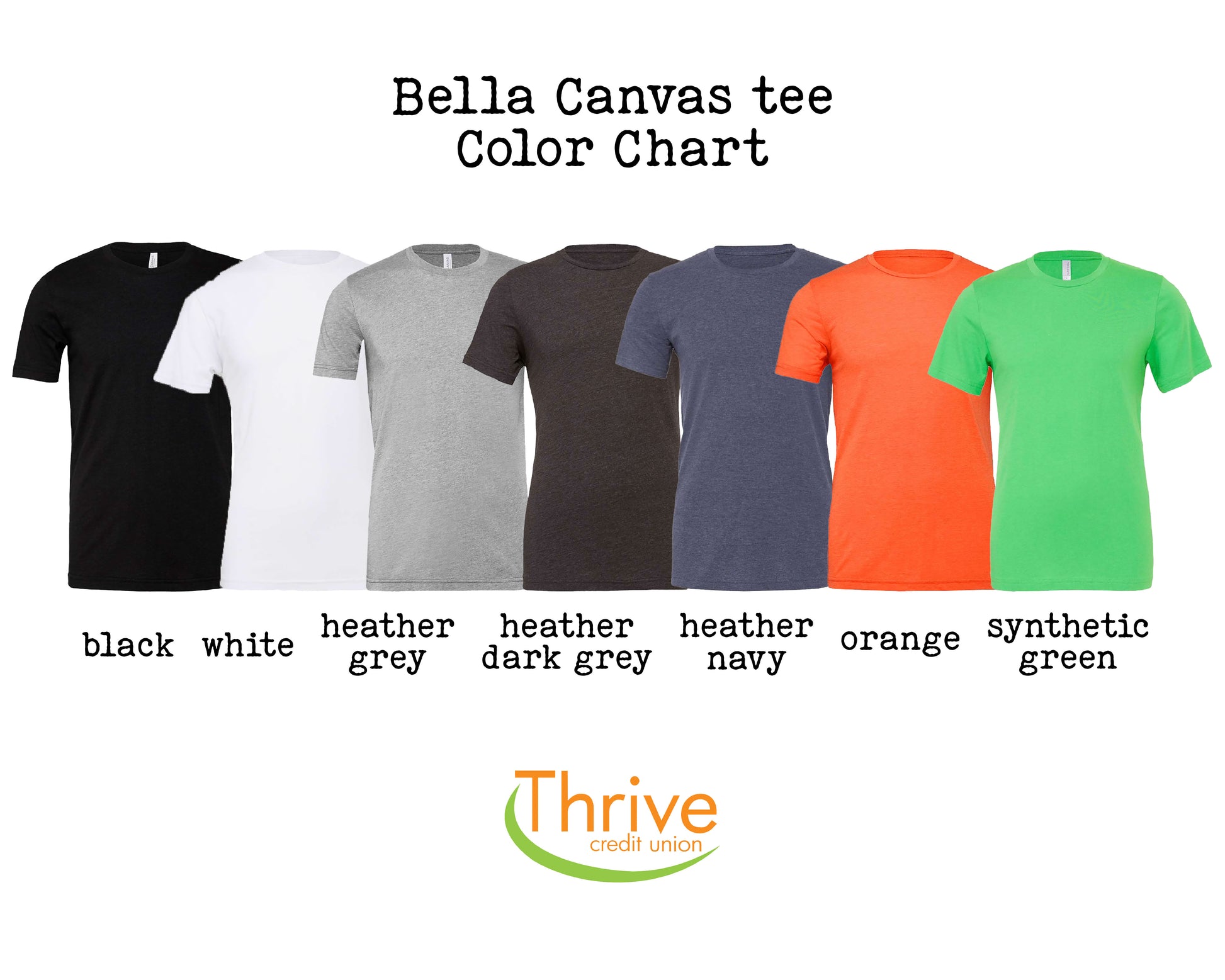 Item shown in black Bella Canvas tee. Depending on color of shirt ordered the font color may change. View product description here.